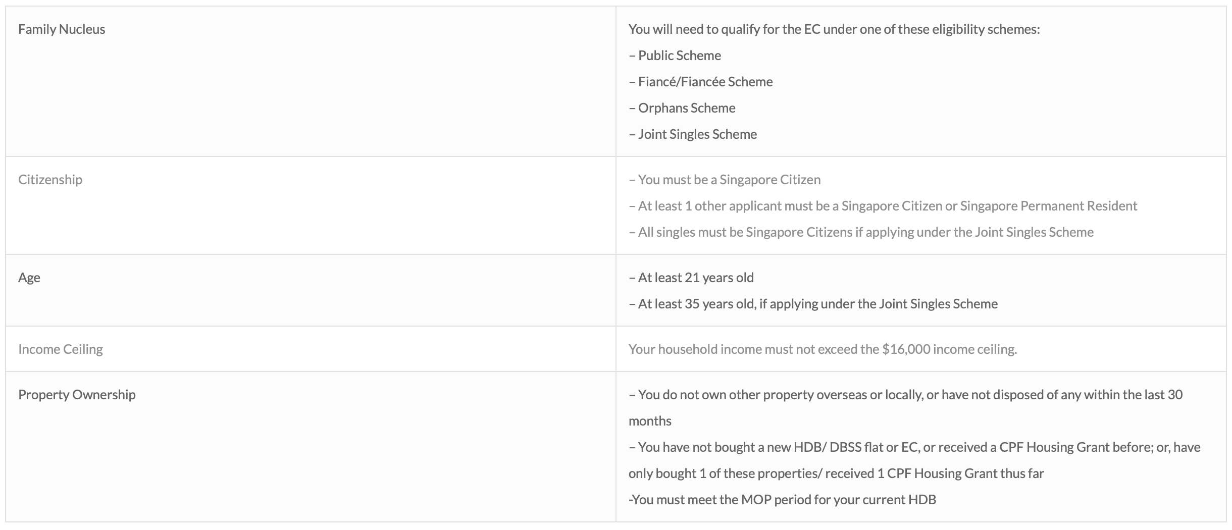 When you purchase a new Executive Condominium (EC) directly from a developer, you could be eligible for a housing subsidy of up to $30,000 under the CPF Housing Grant Scheme.